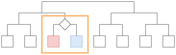 두 팀이 결승전보다 먼저 만난다면 결승전을 기준으로 같은 방향에 있는 팀이라는 뜻입니다. 즉 위 그림처럼 1번 팀, 3번 팀 모두 4이하로 왼쪽에 속합니다. 또 이들은 1~4번 팀을 기준으로 보면 log(2) 4 = 2이고 2^(2-1) = 2 이하인 1번 팀과 2 초과인 3번 팀으로 서로 다른 방향에 있습니다. 이때 두 팀은 크기가 4인 블록에는 함께 속합니다. 크기가 2인 블록에선 서로 다른 블록에 있습니다.