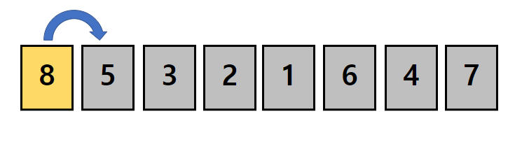 첫 번째 데이터인 8이 두번째 데이터인 5보다 크기 때문에 8과 5의 위치를 바꿔줍시다.