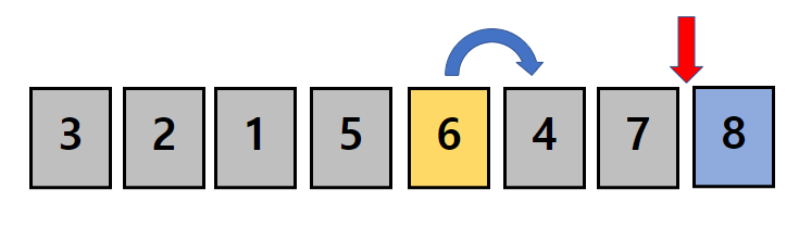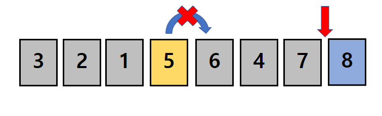 위치를 바꾸지 않는다면, 다음 비교에서 우리는 자연스럽게 5보다 더 큰 수인 6을 기준으로 비교를 하게 됩니다.