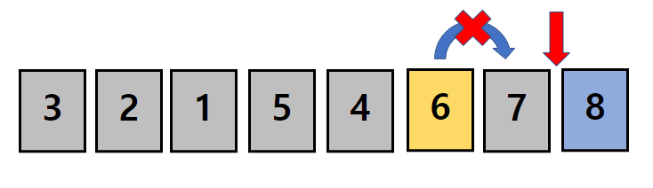 5를 대신해 6이 자기보다 큰 수가 나타날 때까지 계속해서 위치를 바꾸게 됩니다.