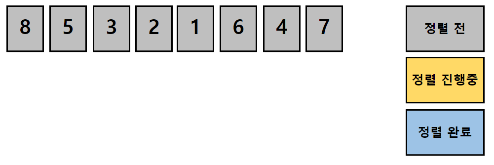 그림에선 8칸짜리 배열에 8,5,3,2,1,6,4,7의 값이 들어 있습니다.