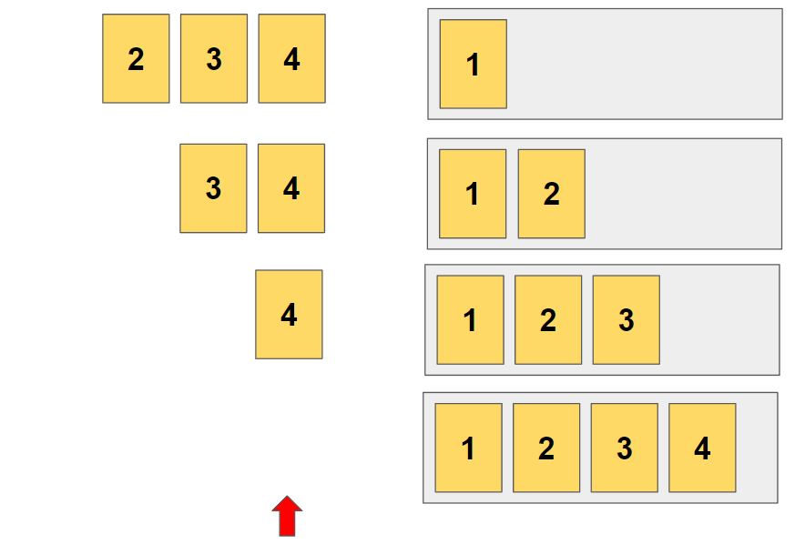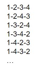 {1,2,3,4}로 4개의 원소를 가진 집합에서 4개를 뽑아 만들 수 있는 순열을 모두 구한다고 해봅시다. = 4P4