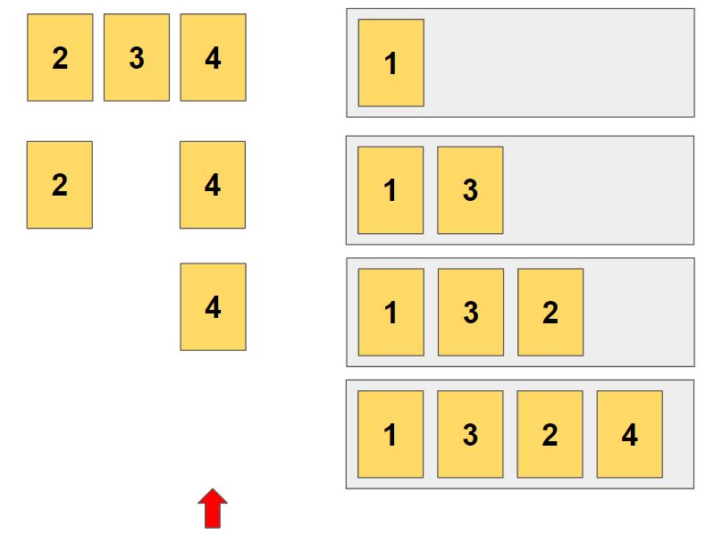 위와 같은 방식으로 진행해서 1-3-2-4 순열을 얻었습니다.